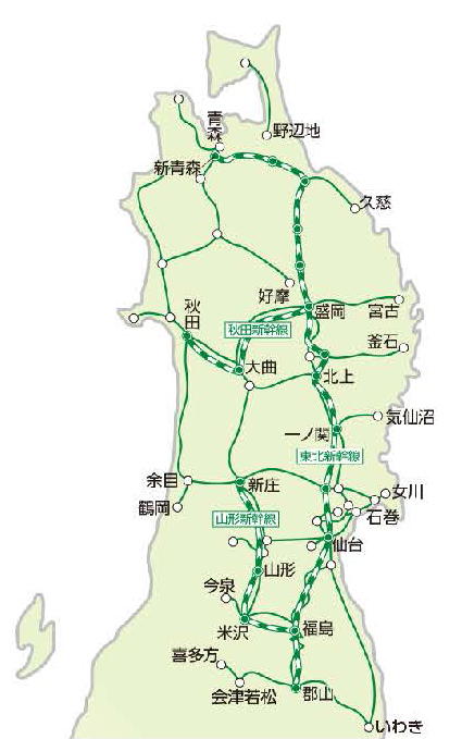 2024年10月に始まった「えきねっとQチケ」の当初の利用対象区間は、下図の通り東北エリアの大部分の区間でした(フェーズ1)。