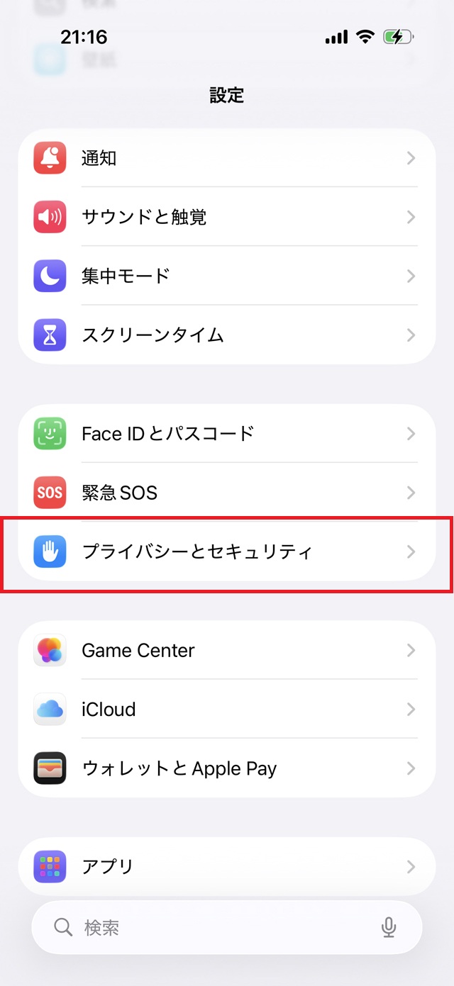 1.[設定]にある[プライバシーとセキュリティ]を選択します。