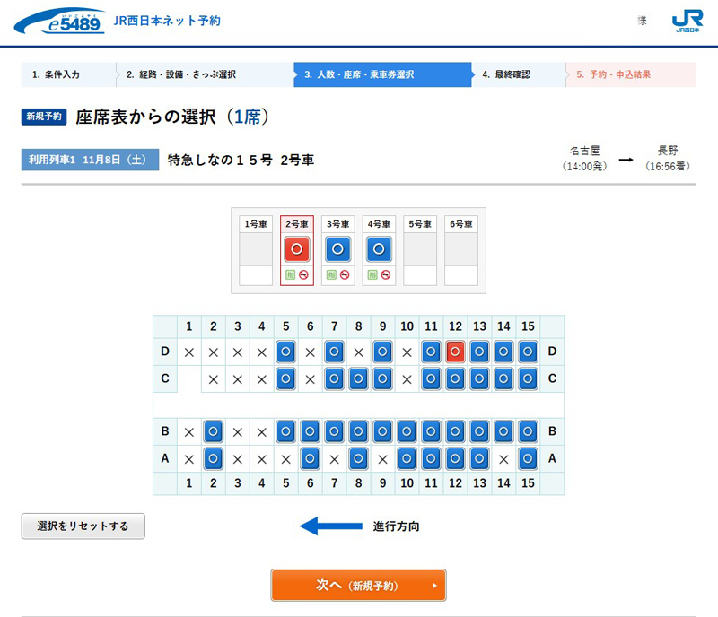なお、「えきねっと」では特急「しなの」号のシートマップを表示することができず、席番がおまかせで割り当てられることに留意しましょう。