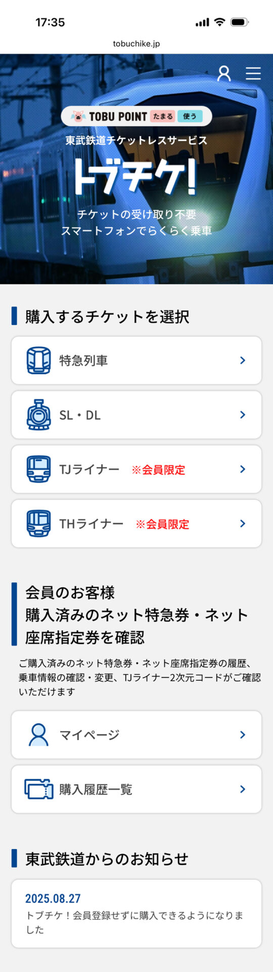 ● 東武鉄道ウェブサイト THライナー 2025.8閲覧